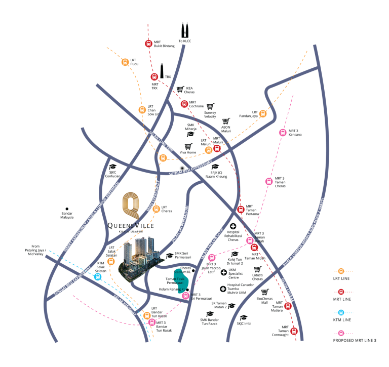Queensville, an integral aspect of Bandar Sri Permaisuri’s beautiful township, is located in a vibrant part of Cheras, Kuala Lumpur, surrounded by prime spots such as Bandar Tun Razak, Taman Desa, Taman Pertama, and Salak South. This splendid locale prides itself on varied access routes via highways and roads for swift, satisfying travel. Moreover, residents can