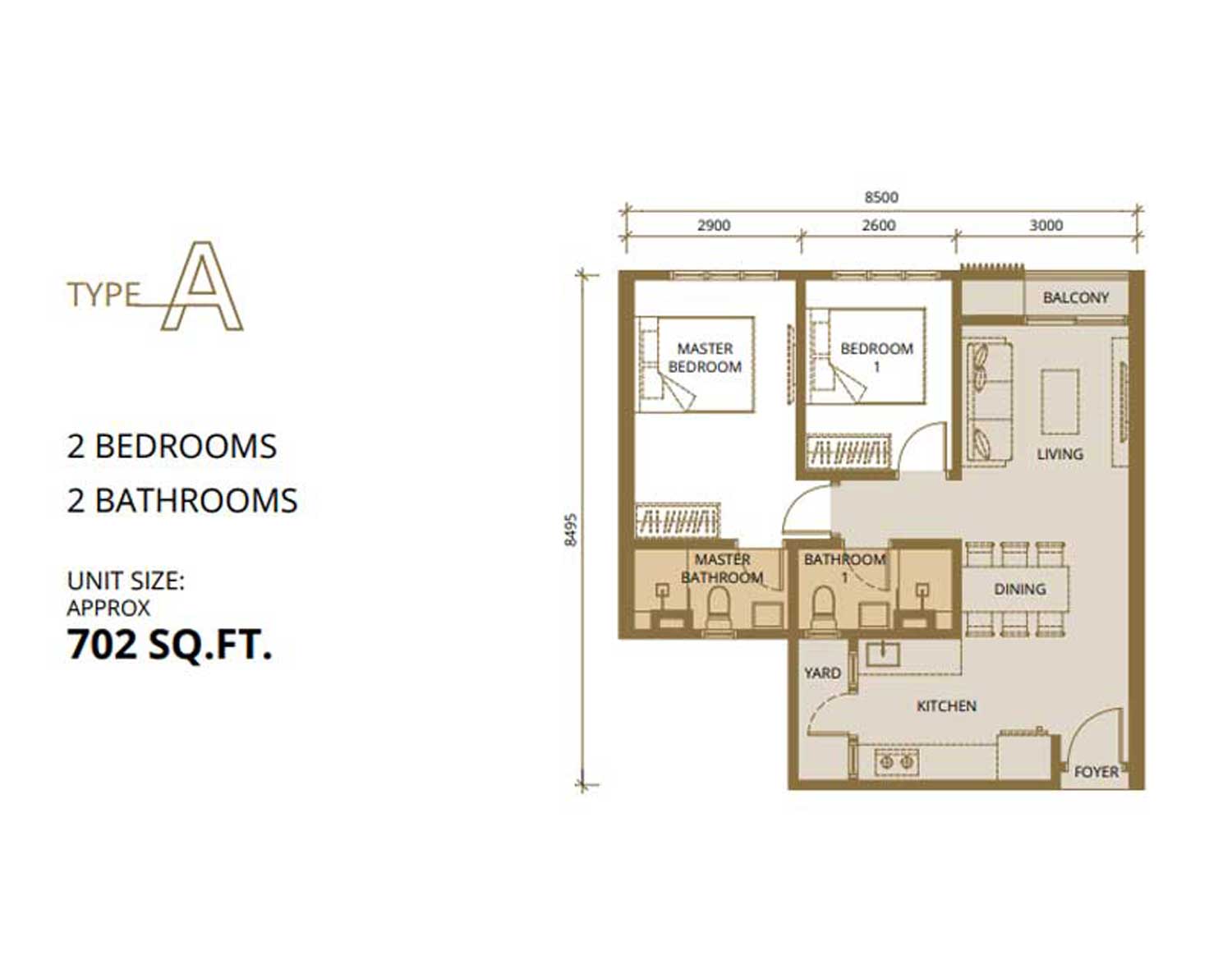 Unit size from 702 to 1,212 sqft.